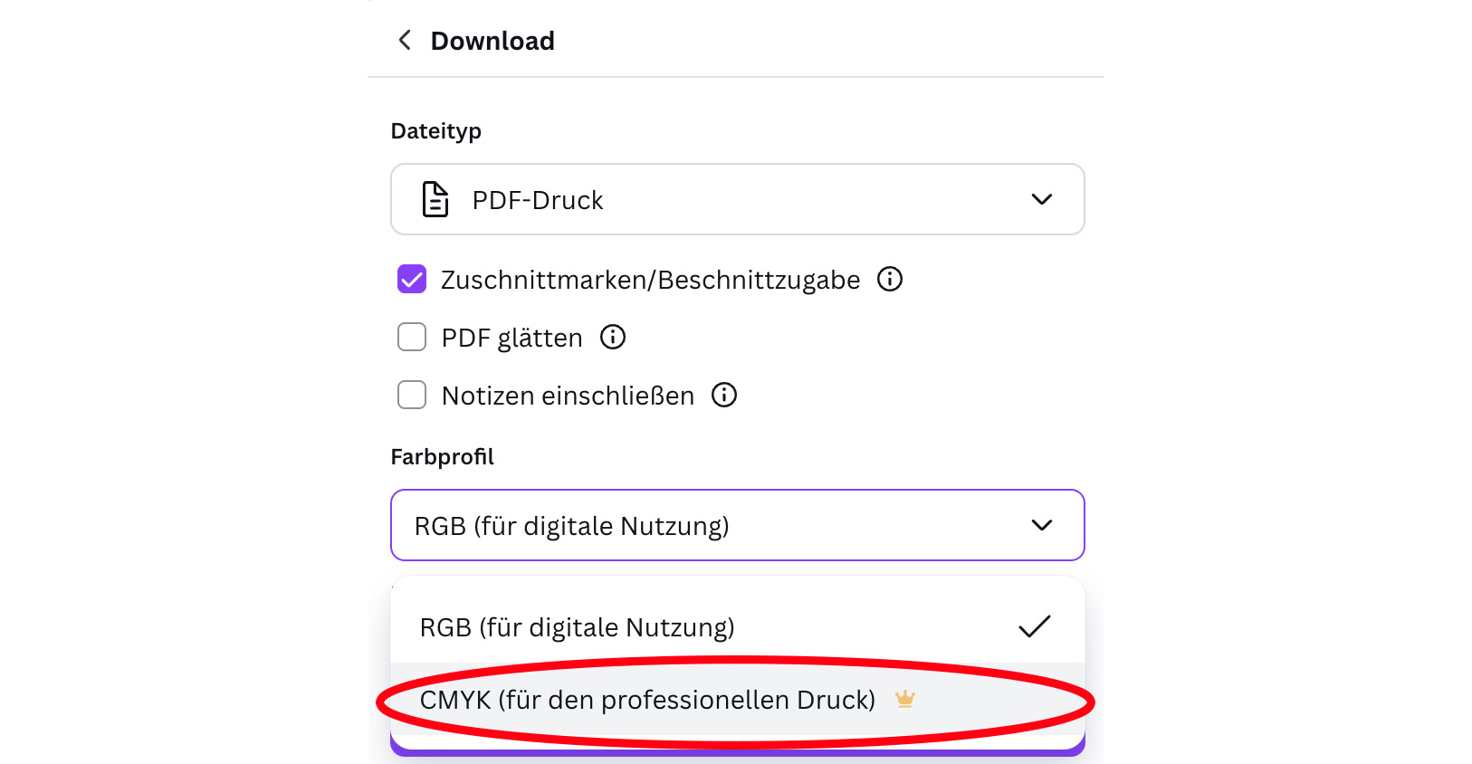 4. Aktivieren Sie:Farbprofil: CMYK (Pro Version benötigt)