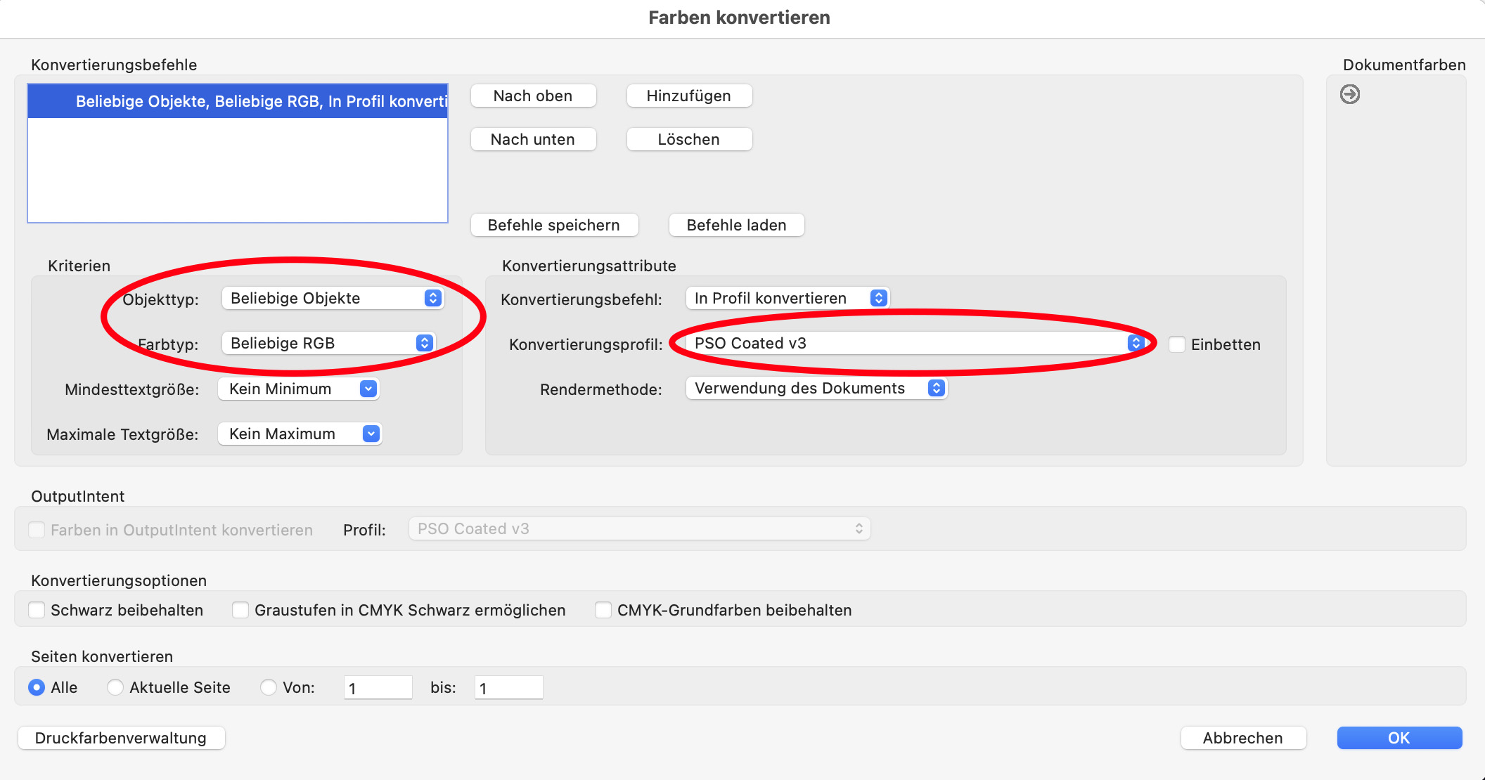 Zielprofil: gewünschtes CMYK-Farbprofil (z. B. ISO Coated v3 )